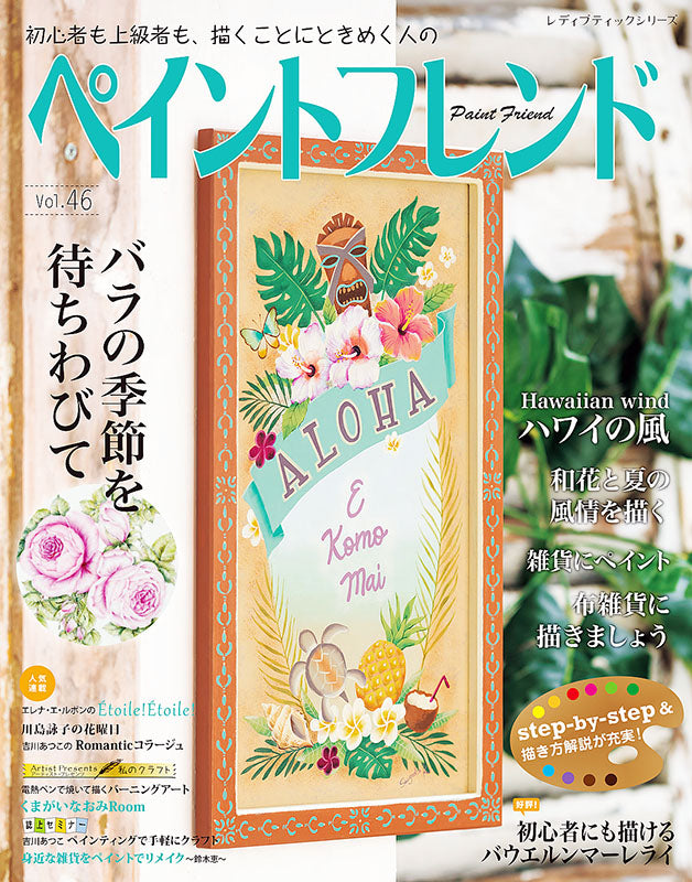 巻頭特集は夏に向けて描きたい「Hawaiian wind」で、家にいながらハワイ旅行気分を味わって。その他、「バラの季節を待ちわびて」「和花と夏の風情を描く」「布雑貨に描きましょう」など季節感満載のテーマが盛りだくさん!A4変判(297×233mm)