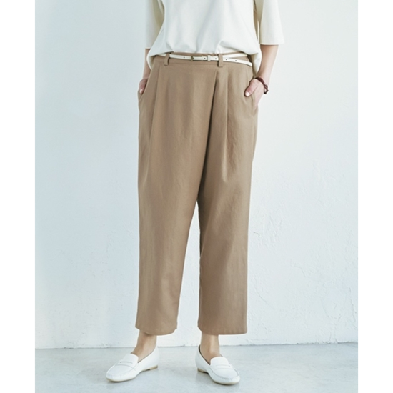 スタイル良く見える、テーパードシルエットのパンツ 脚長効果バツグンのテーパードシルエットパンツ。前のウエスト部分は大きくタックをとり、ラップ風のパンツに見えるちょっと変わったデザインになっています。ポケットもしっかり付いていて機能的。作り方も簡単に作れるよう工夫しました。ウエストベルトは、後ろ側にだけゴムテープが通してあるので、作りやすく履きやすいうえ、ウエストまわりがスッキリ見えるのが嬉しいポイント。ベルト通しも付ければ見栄えも本格的。好みのベルトを通してコーディネートを楽しんで。通常価格 ¥660~¥1,375セール価格 ¥660〜 通常価格単価 あたり