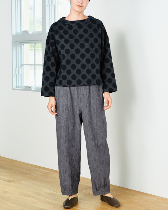履きやすさと見栄えを兼ね備えたガウチョパンツ ゆったりしていて履きやすい。でも、気になるところも程よく隠せて、スタイルもよく見せてくれるガウチョパンツ。ポケットもしっかり付いていて機能的。作り方も簡単に作れるよう工夫しました。ウエストベルトは、後ろ側にだけゴムテープが通してあるので、作りやすく履きやすいうえ、ウエストまわりがスッキリ見えるのが嬉しいポイント。とろみのある素材で作ればエレガントな印象に、リネンやダンガリー、薄手のデニムなどで作れば普段使いにちょうどいいアイテムに。冬にはウール素材などで作っても。素材を変えれば一年中楽しめるデザインです。通常価格 ¥550~¥1,210セール価格 ¥550〜 通常価格単価 あたり -