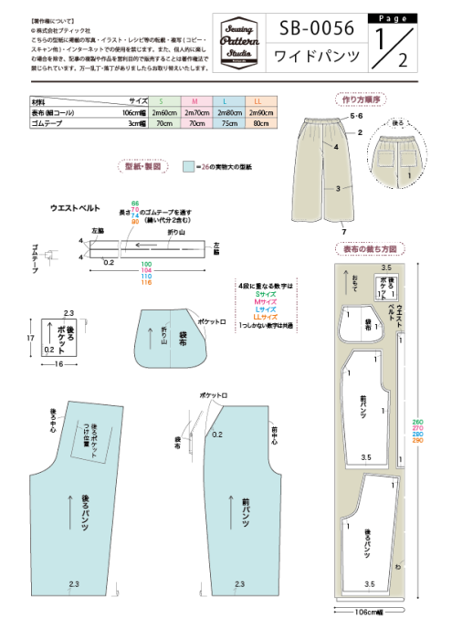 【型紙】ワイドパンツ(SB-0056)
