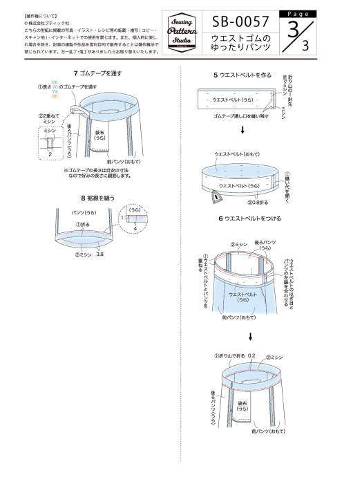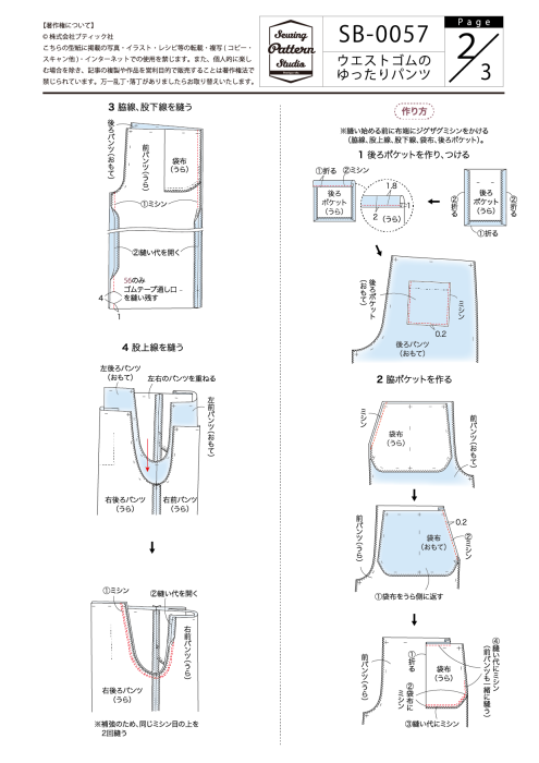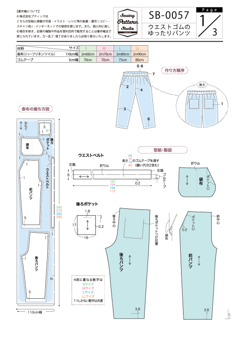 【型紙】ウエストゴムのポケット付きパンツ(SB-0057)