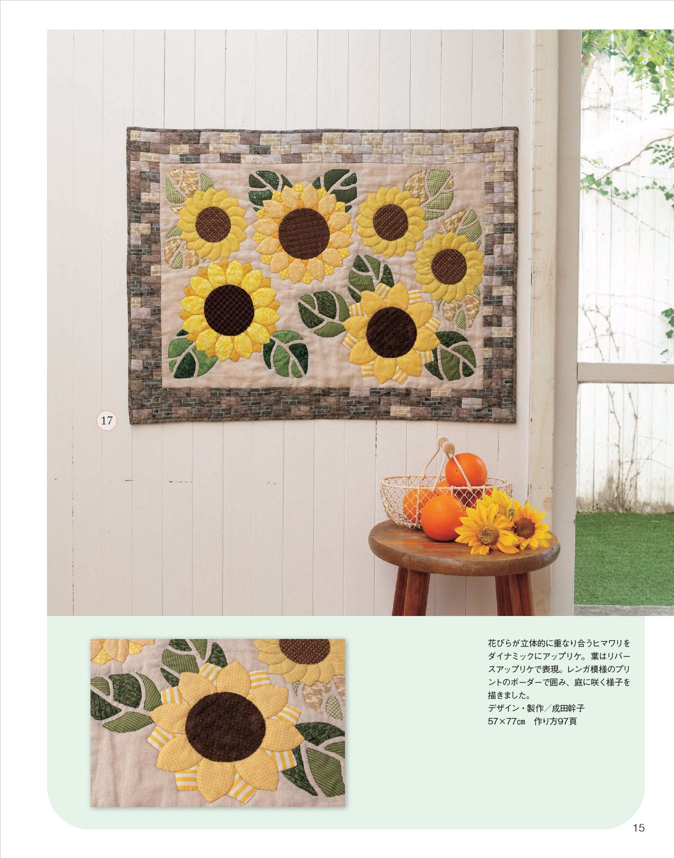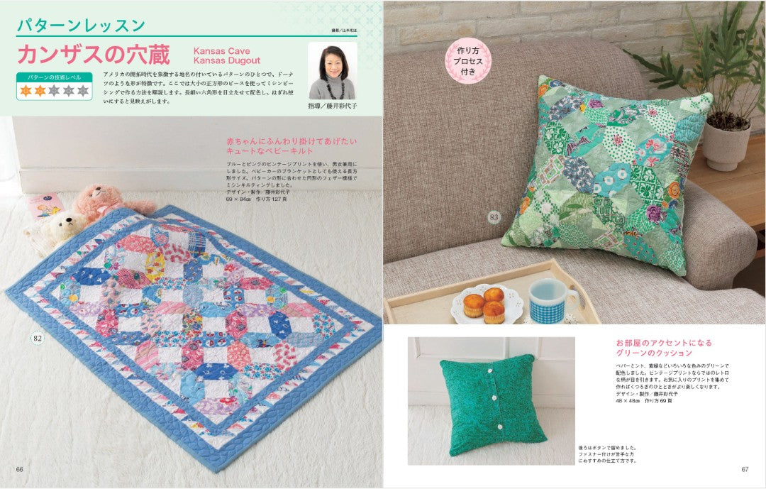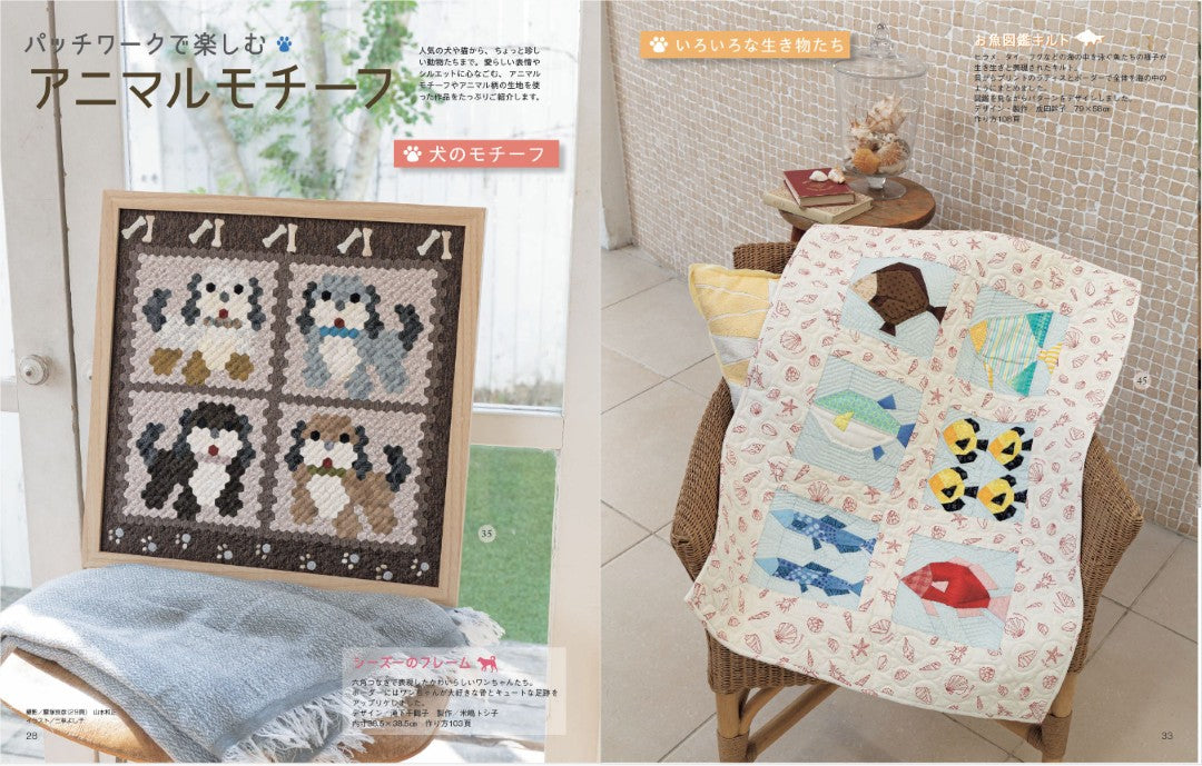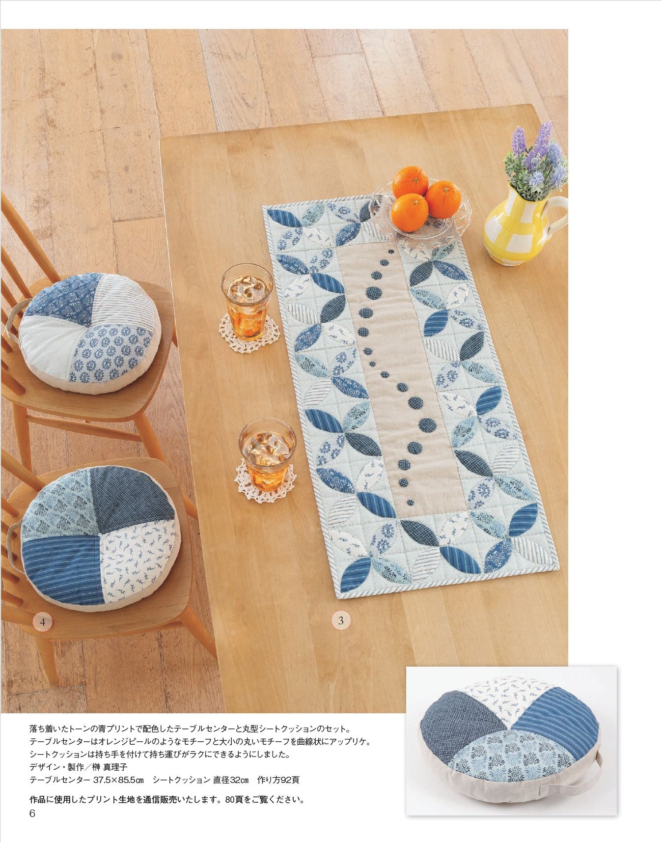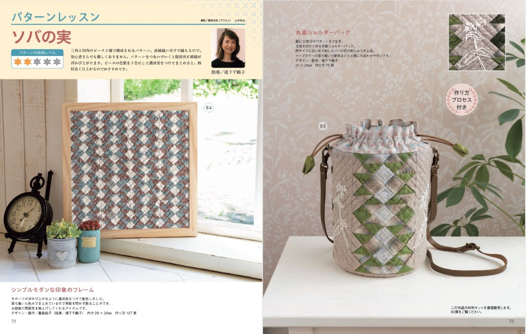 大小のキルトや気軽に作れるテーブル小物などを掲載。