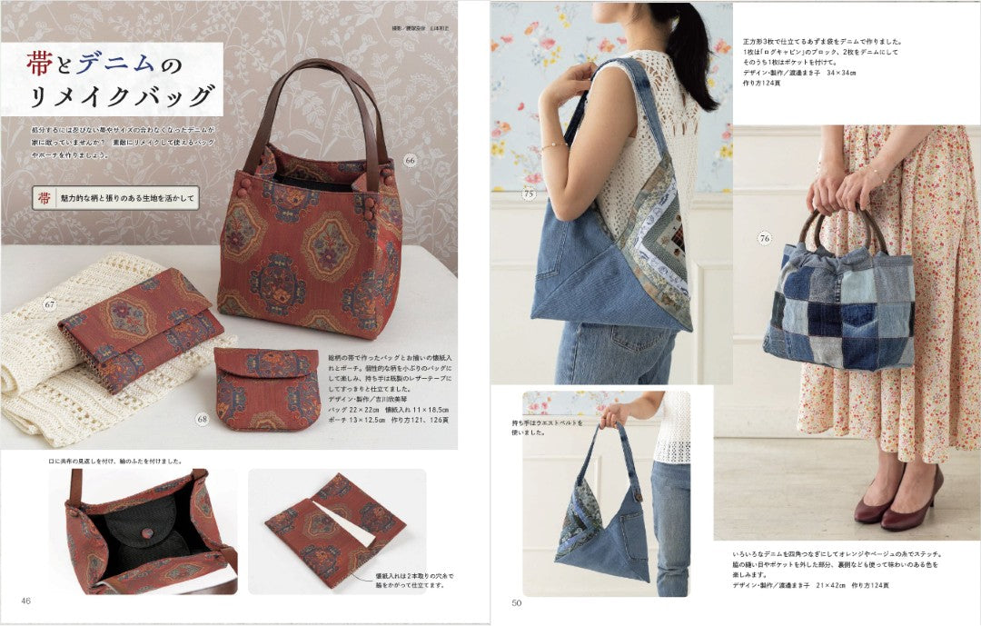 ・デニムと帯のリメイクバッグなど