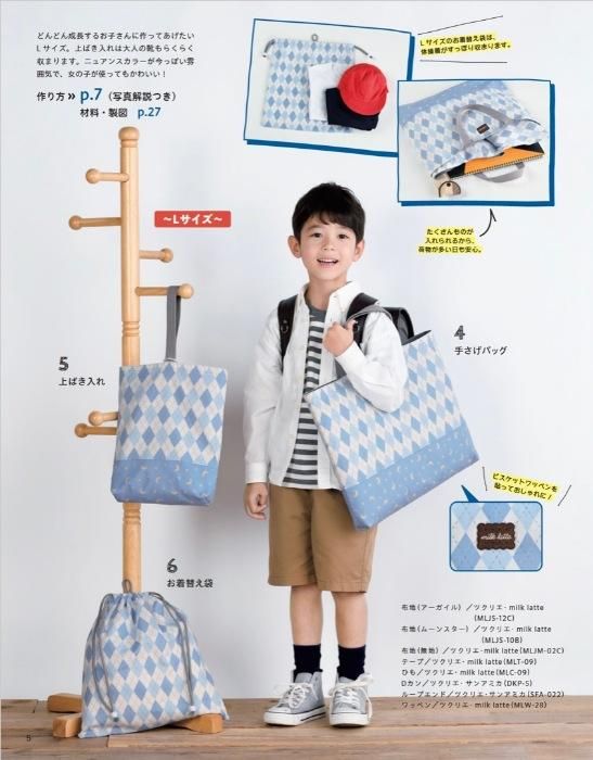 入園入学準備から、その後もずっと使える1冊!わかりやすい写真プロセス解説つきで、ソーイング初心者さんでも安心。手さげバッグ・上ばき入れ・お着替え袋の3点セットをはじめ、通園通学で使えるきほんのアイテムをバラエティ豊富に掲載。見やすいオールカラー96ページ。型紙1枚つき。