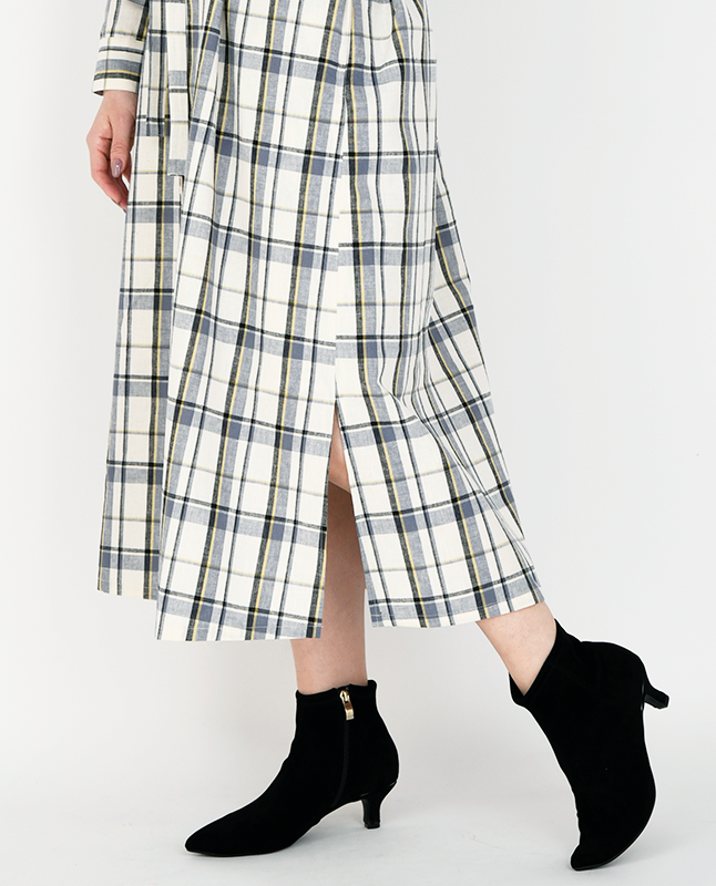 トラッドなチェックのワンピース。