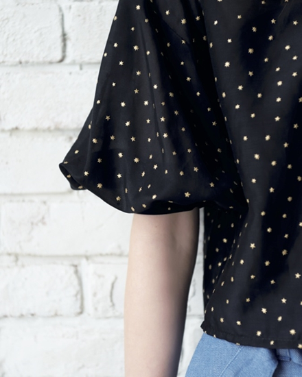 ボリューム感のあるバルーンスリーブがポイントのブラウス。