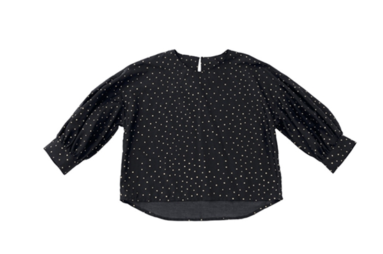 袖にボリュームがある分、身頃はシンプルなので、無地からプリント柄までどんな素材でも合います。