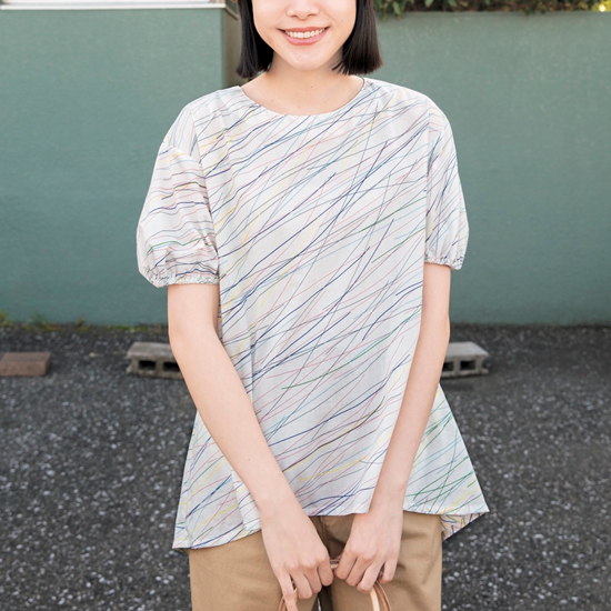 ボリューム袖がキュートなシンプルブラウス ボリューム感のあるバルーンスリーブがポイントのブラウス。袖は2wayで、普通に着るとパフスリーブ、カフス部分をひじ上まで上げるとふんわりとしたバルーンスリーブに変身します。袖にボリュームがある分、身頃はシンプルなので、無地からプリント柄までどんな素材でも合います。ボトムもパンツやスカートなど、着まわしも幅広く!裾は後ろ側が少し長めの前後差のあるデザインで、洗練感をプラス。ふんわりした袖のシルエットを綺麗に出すため、布地は柔らかく薄めのローンやブロードなどがオススメです。通常価格 ¥550~¥1,100セール価格 ¥550〜 通常価格単価 あたり