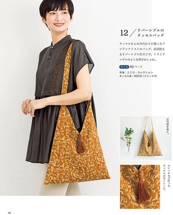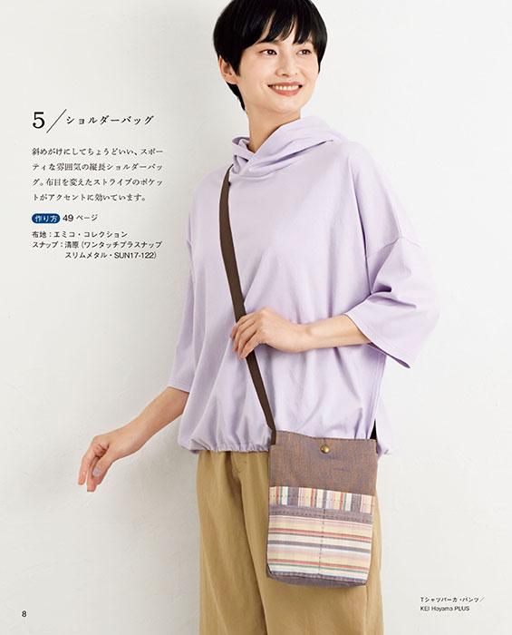 人気の手ぬい作家高橋恵美子の著者本。手ぬいでかんたんに作る、やさしい使い心地のバッグとポーチ。普段に便利なトートバッグ、ショルダーバッグ、エコバッグから、ちょっとおしゃれな手さげなど、幅広いデザインを掲載。流行りのスマホショルダーやバネ口金ポーチなどの紹介も。全32点。一部切ってそのまま使える実物大の型紙つき。