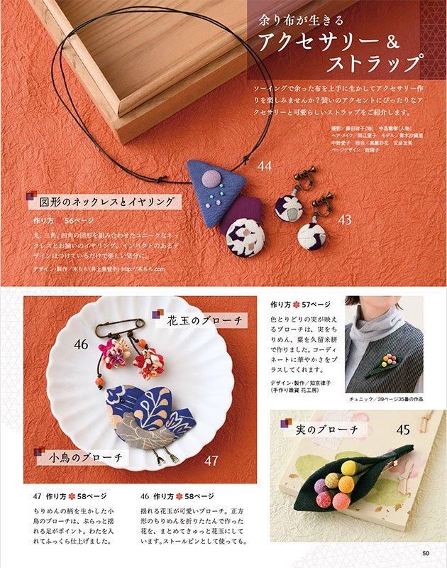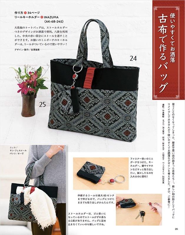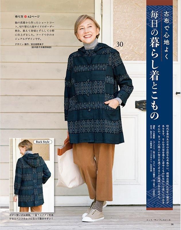 和布の魅力を生かしたお出かけ服や日常着をご紹介。人気の着物から作る服、帯リメイクバッグ、藍の古布で作る暮らし着や小物類も充実。季節のお飾りや、アクセサリーなども。猫のぬいぐるみや、キッチン&食卓こものなど、暮らしを楽しむアイテムも満載。実物大の型紙と詳しい解説つき。