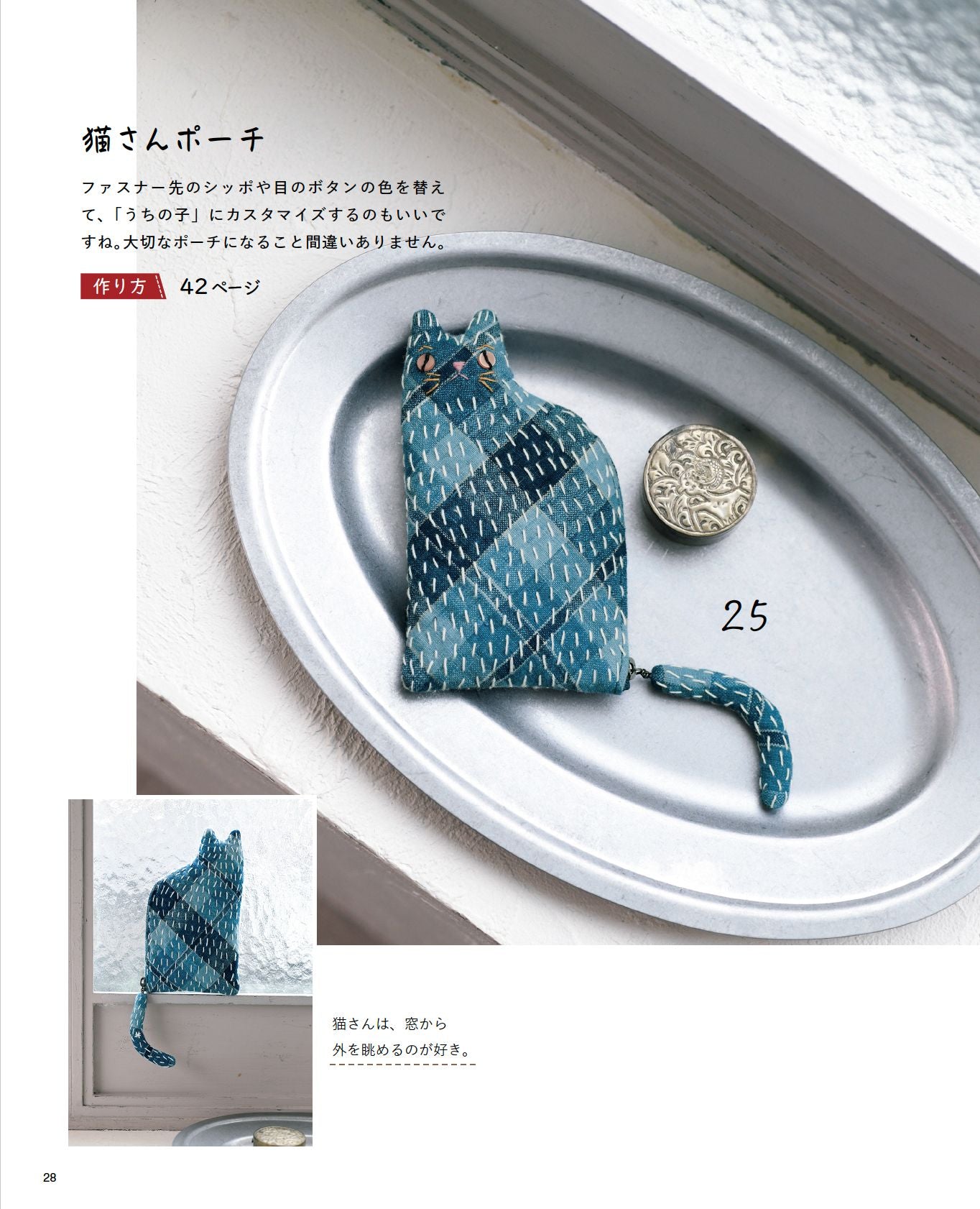 藍古布にステッチを加えた作品作りで人気の作家。猫を愛し、ゆっくりと手作りを楽しんでいる。