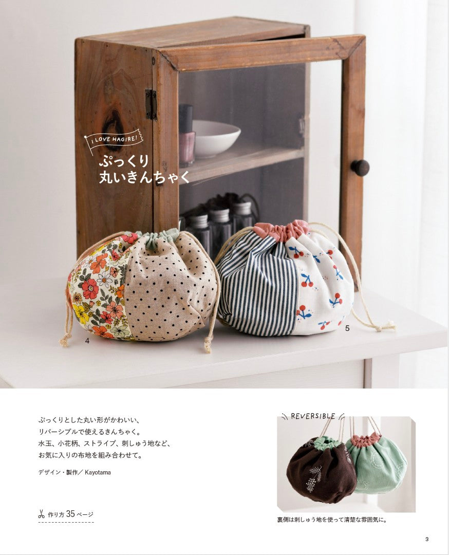 余り布やカットクロスなど、ハギレを使って作るかわいい布こものをご紹介。バッグ、ポーチ、おうちこもの、チャーム、アクセサリーなど、わずかなハギレも無駄にしない、楽しいアイデア満載の1冊。79点掲載。