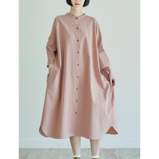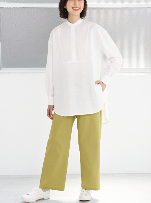 【型紙】スタンドカラーのひざ丈シャツ(SB-0073)