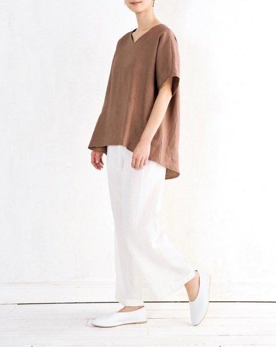 ゆるっと着られてきちんと見えのブラウス 程よく開いたVネックとふんわり袖口が特徴のブラウスは、ユルいけどきちんと見える大人の女性にぴったりです。ゆるっとしたシルエットは体型を問わず、さりげなくこなれ感を演出してくれます。オフィスからデートまで幅広いシーンで活躍し、カジュアルにもきれいめにもコーディネート可能。※あきがないデザインですので、伸縮地を使用することをオススメします。出来上がり寸法をご確認の上、ご購入ください。通常価格 ¥880~¥1,760セール価格 ¥880〜 通常価格単価 あたり -