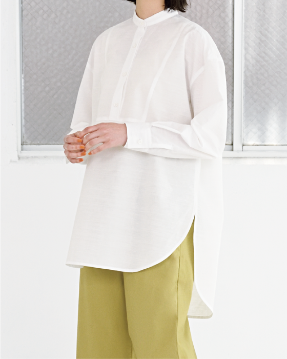 前後差をつけた裾のラインがあか抜けた雰囲気のブザムシャツ