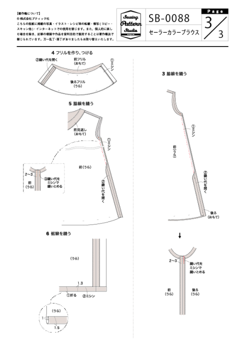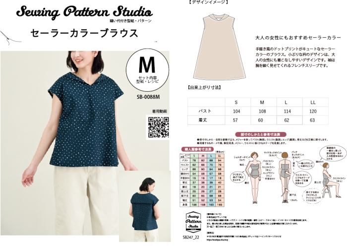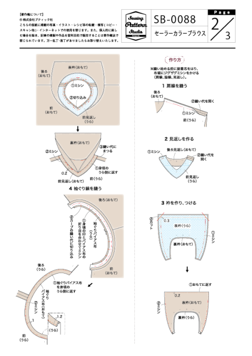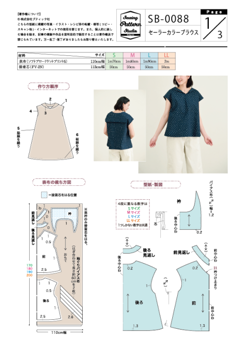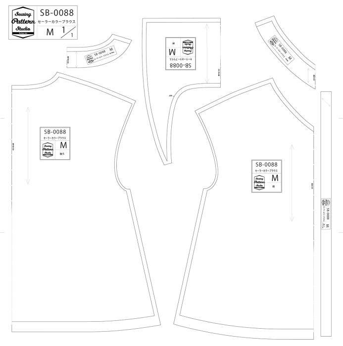 型紙は袖部分が身頃から続いているので、袖付けがなく作りやすいのもフレンチスリーブの魅力です。