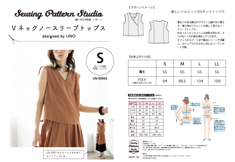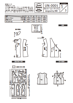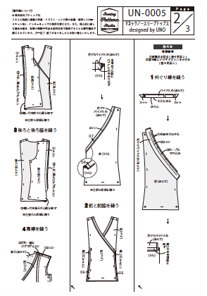 【型紙】Vネックノースリーブトップス designed by UNO(UN-0005)