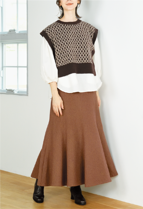 生地のセレクトで楽しめる8枚はぎのマーメイドスカートスカート 歩く度に裾が美しく揺れる、8 枚はぎのマーメイドスカート。着回しやすいテラコッタカラーのコットンツイードをチョイス。ショート丈のベストを合わせスタイルよく着こなして。通常価格 ¥550~¥1,210セール価格 ¥550〜 通常価格単価 あたり -
