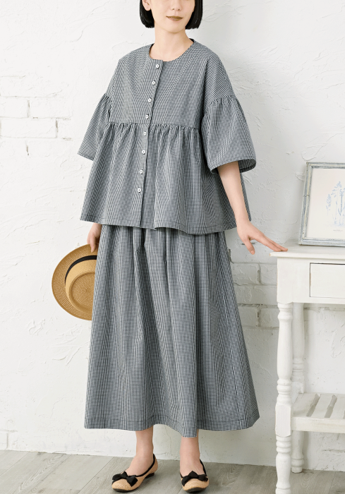 ふんわりブラウス(SB-0091)と合わせるとセットアップとしてコーディネートできます。