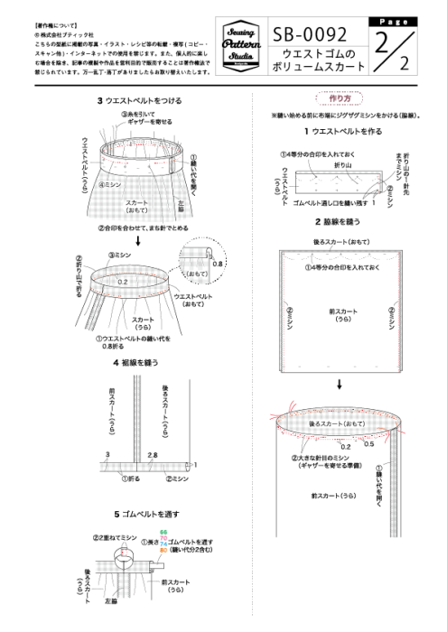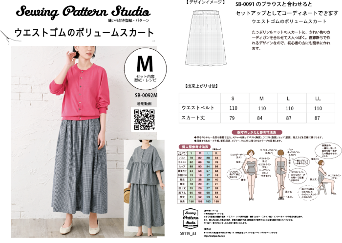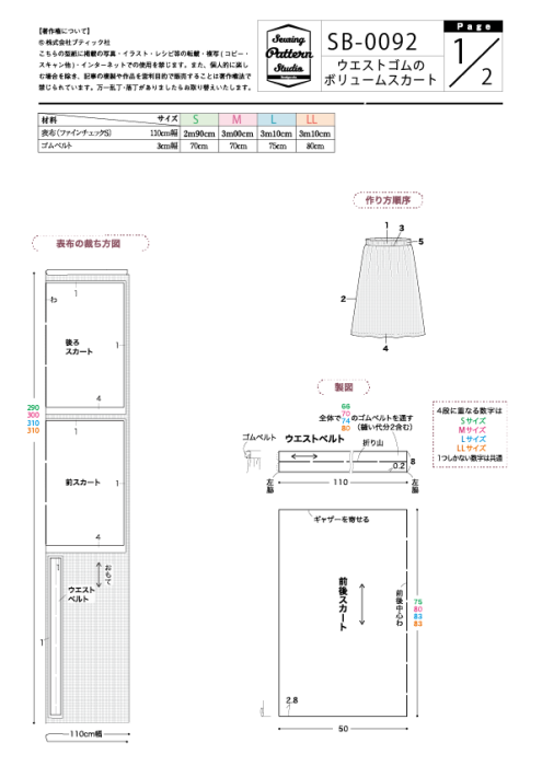 【型紙】ウエストゴムのボリュームスカート(SB-0092)