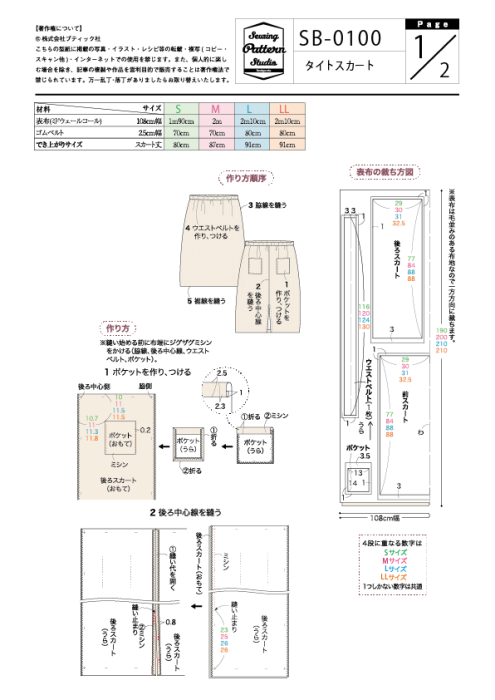 【型紙】(A4サイズ) S21枚/ M21枚/ L21枚/ LL24枚 (貼り合わせてお使いください)