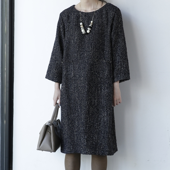 ツイードの素材感を活かして作る、冬のワードローブ ポケット口と、裾の横糸を抜いてほつれさせて、フリンジのようにしてデザインのアクセントに(ワンピースの場合は二つ折りにします。)。ツイードならではの遊び心あるデザインを楽しんで。もちろん、ツイードでない布地で作ることもできるので、コットンやリネンで作れば春や秋にも活躍できます。使用する布地に合わせて、ポケット口や裾は三つ折りにアレンジして。後ろの衿ぐりのあきは、ヨーク切り替えを利用して作りやすく工夫したうえ、ちょっとしたデザインのポイントにもなっています。 ※こちらの型紙は、裾線のカットする位置を変えることで、プルオーバーとワンピースの2タイプを作ることがでます。通常価格 ¥550~¥1,155セール価格 ¥550〜 通常価格単価 あたり
