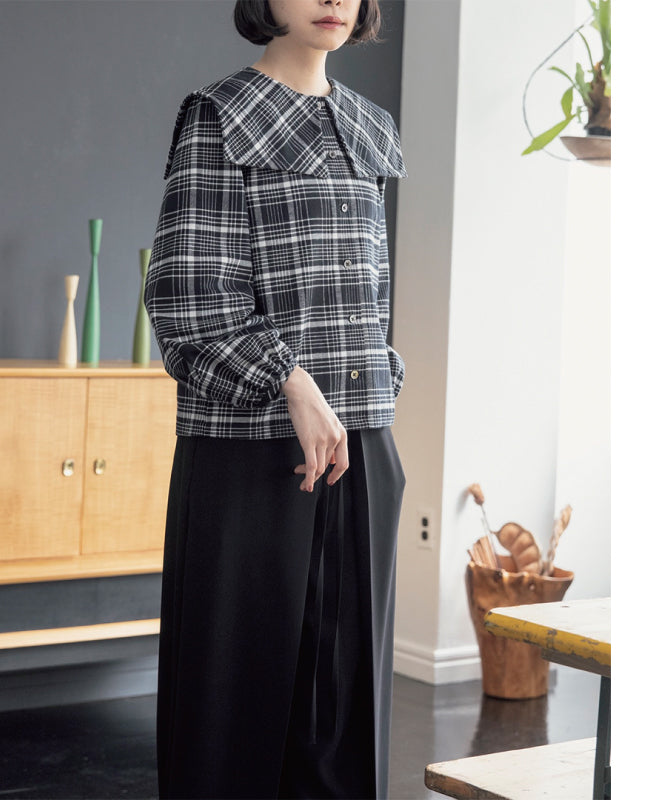 セーラーカラーのビックシルエットの衿が印象的なブラウス。