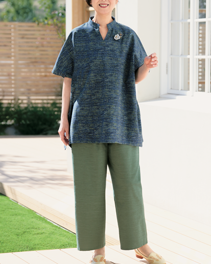 七分袖のチュニック。暑い季節には過ごしやすいデザイン。