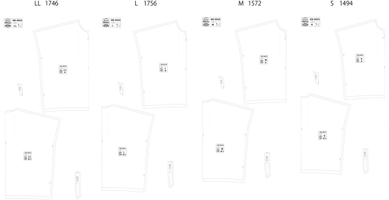 【型紙】(A4サイズ) S17枚 / M18枚 / L19枚 / LL19枚 (貼り合わせてお使いください)