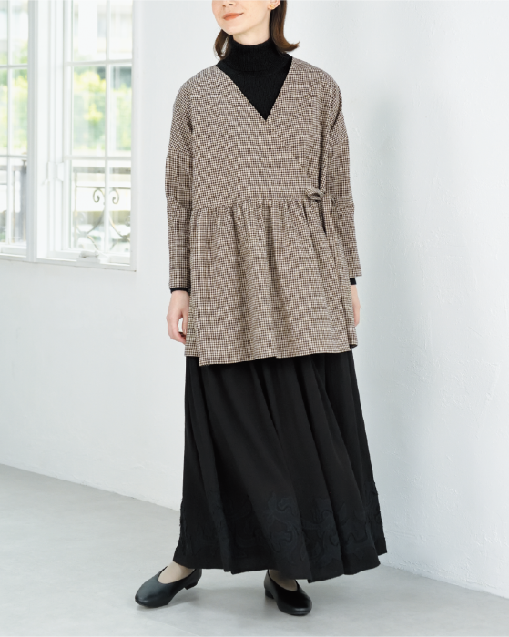 コットンリネンのギンガムチェックでナチュラルな雰囲気に。