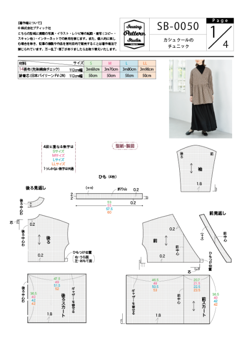 【型紙】(A4サイズ) S27枚/ M30枚/ L31枚/ LL32枚 (貼り合わせてお使いください)
