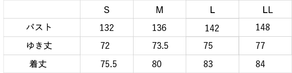 【着丈】75.5cm/ 80cm/ 83cm/ 84cm