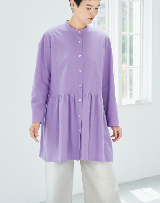 ウエストの切り替え下にギャザーを寄せた、ふわりとしたシルエットのチュニック。