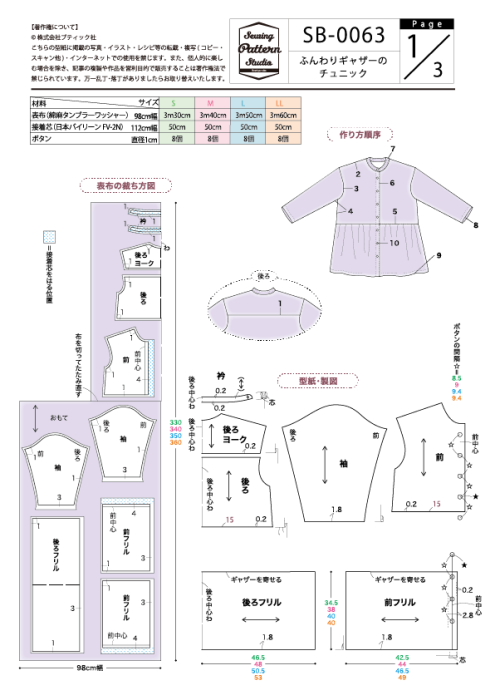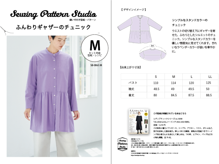 【型紙】ふんわりギャザーのチュニック(SB-0063)