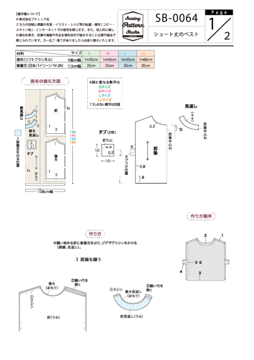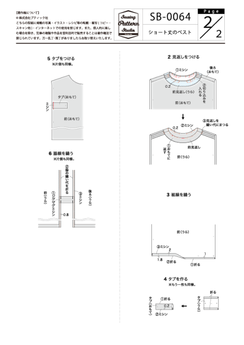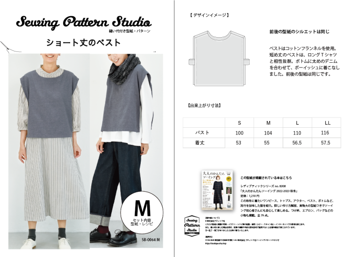 【型紙】ショート丈のベスト(SB-0064)