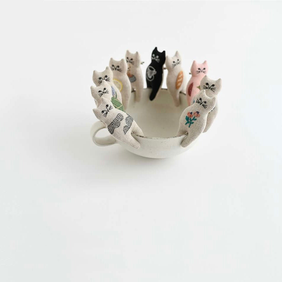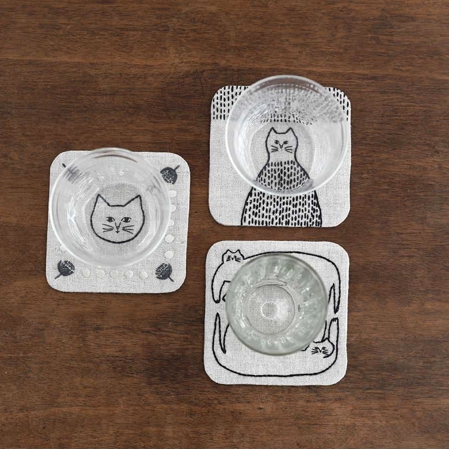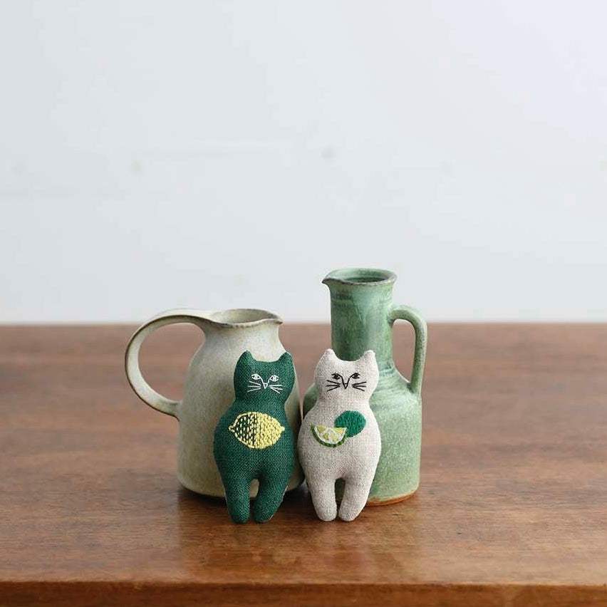 無表情のようでいて、優しくも見える。時にはシュールな正面ネコブローチ。刺繍のデザイン豊富に紹介しているので、お気に入りを見つけてください。