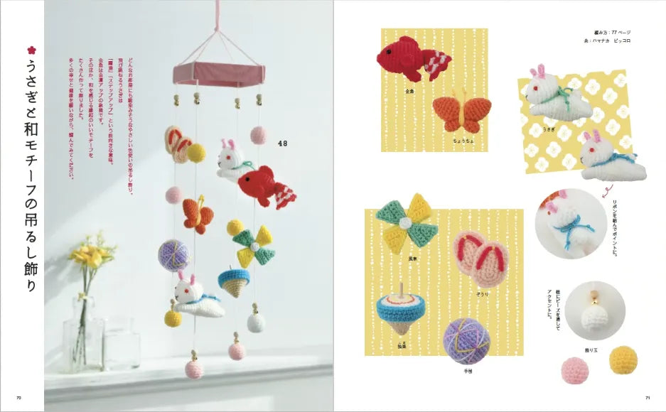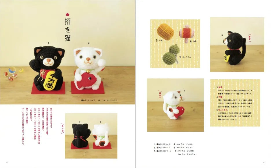招き猫やだるま、フクロウ、カエル、十二支など縁起の良いモチーフを豊富に揃えたあみぐるみ本。お家の中で楽しめる置物タイプのあみぐるみや、吊るし飾り。いつも持ち歩けるストラップタイプのあみぐるみや、がま口などかわいい小物をご紹介。編み方は初心者の方にもうれしいオールカラー解説。