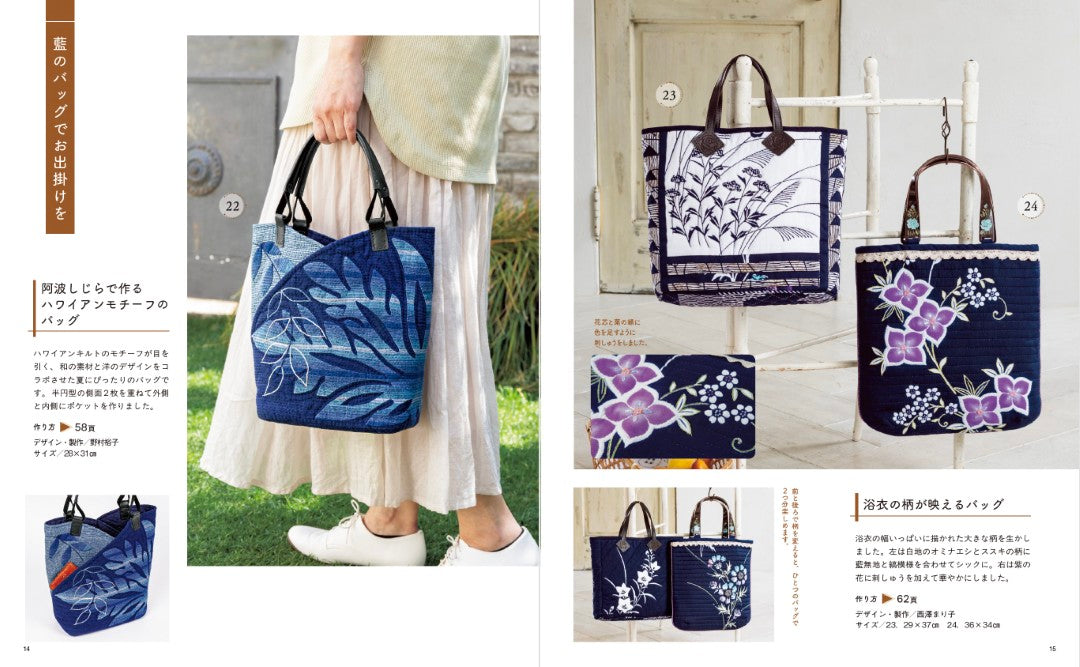 深みのある色から淡い色まで様々な表情を持つ藍は、いろいろな色柄を合わせることで魅力が増します。この本では古布と現代の藍布、浴衣や手拭い、藍染め風プリントなどを使ったバッグ、ポーチ、インテリアキルトと小物、服を掲載。見た目も涼しく心安らぐ藍のキルトは、夏だけでなく1年を通して暮らしを彩ってくれます。