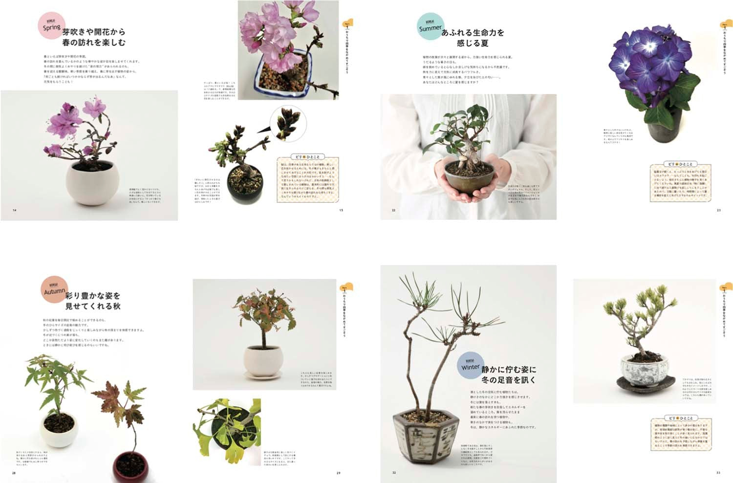 在宅ワークの合間やティータイムなど、日常生活のふとした瞬間に楽しむことができる「手のひら盆栽」はいかがでしょうか?小さいながらも、香り、芽吹き、花を咲かせ、実をつけ、紅葉し、落葉し、そして春にまた芽吹く姿は自然界の植物そのもの。手のひらで精一杯生きている植物は私たちに、元気や気づき、安らぎや癒しを与えてくれます。そんな手のひら盆栽の楽しみ方、種類はもちろん、作り方やお手入れの仕方まで丁寧に解説した一冊。ビリ著。