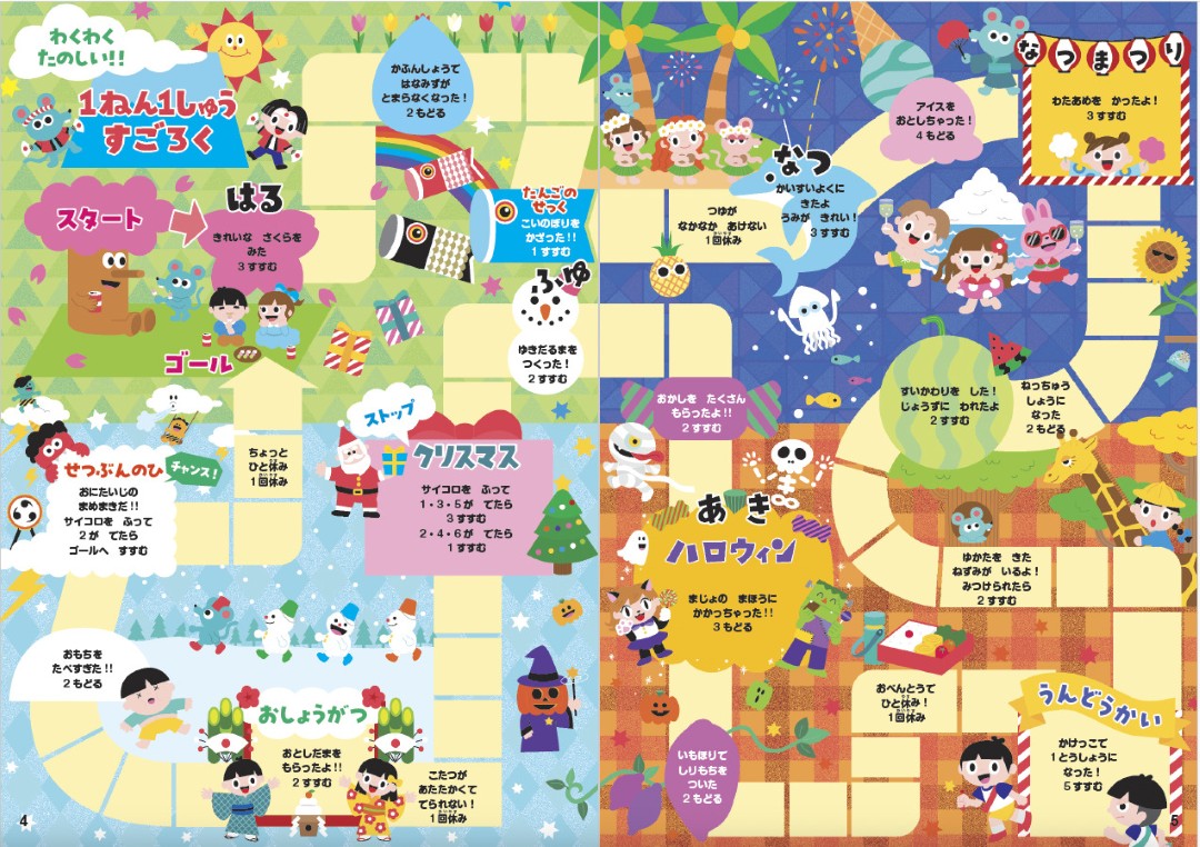 イラストレーター、阿部めぐみさんと三角亜紀子さんが描いた、とっても楽しい、すごろくをたくさん掲載!すいぞくかん、パンケーキやさん、むじんとう、うんち、きもだめし、アイドルデビュー、バースディパーティーなどをテーマにして、男の子も女の子もみんなで楽しめます。