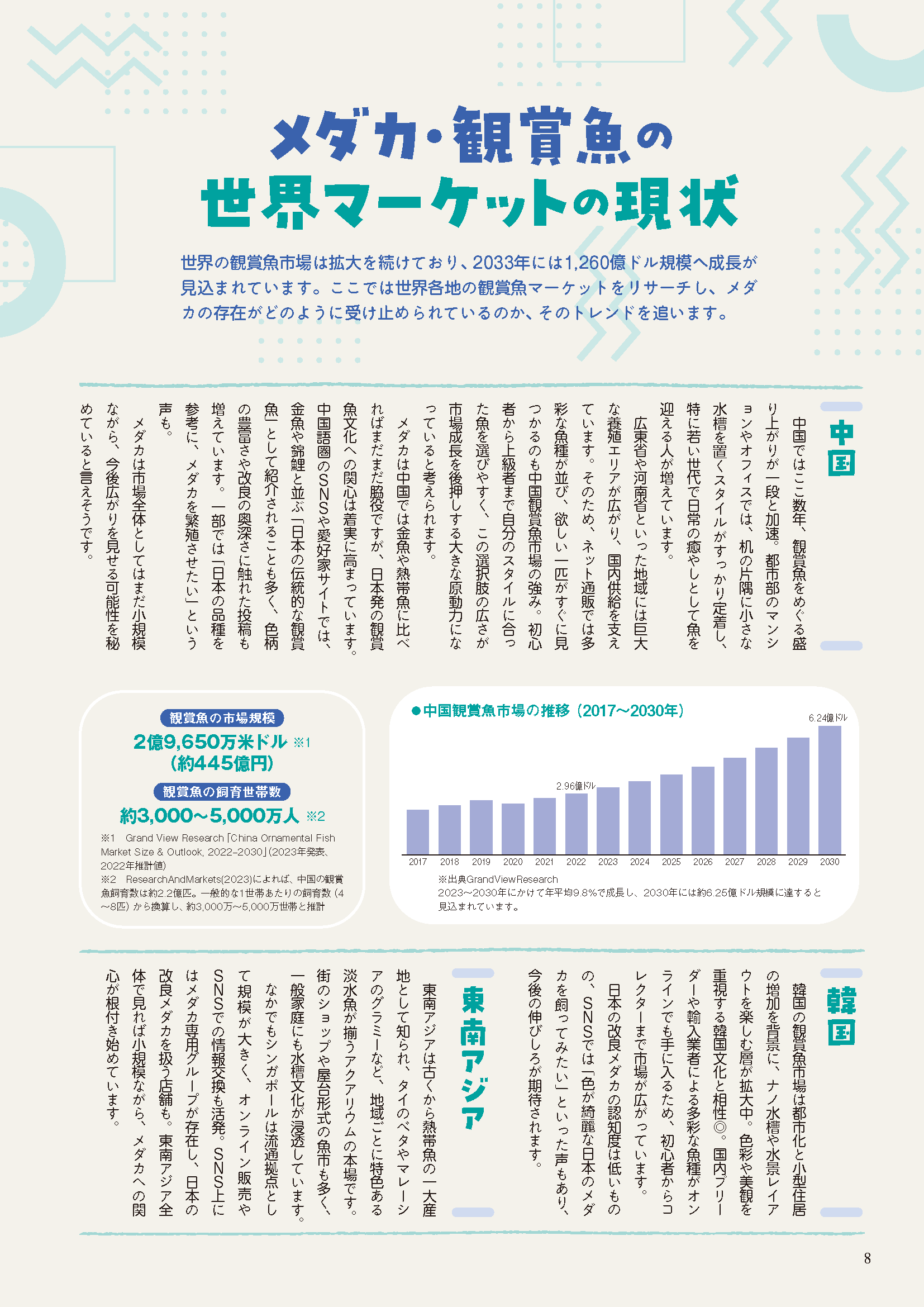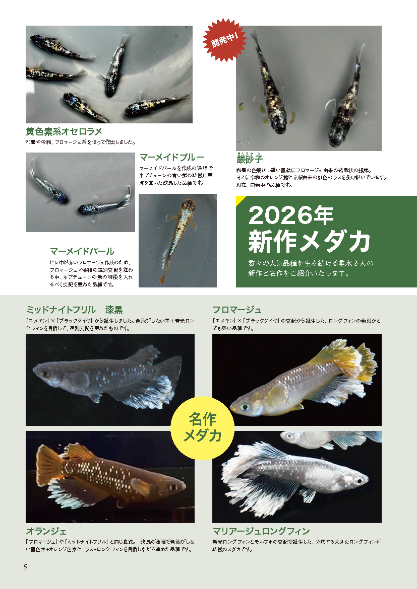 有名ブリーダーの新作をはじめとしたメダカ最新情報を網羅。海外の情報や、学術界から見たメダカなど、これまで以上に視野を広げてたテーマも掲載。初心者が気になる「冬のメダカの買い方」も特集しています。初心者から上級者まで、すべてのメダカファン必読の一冊。