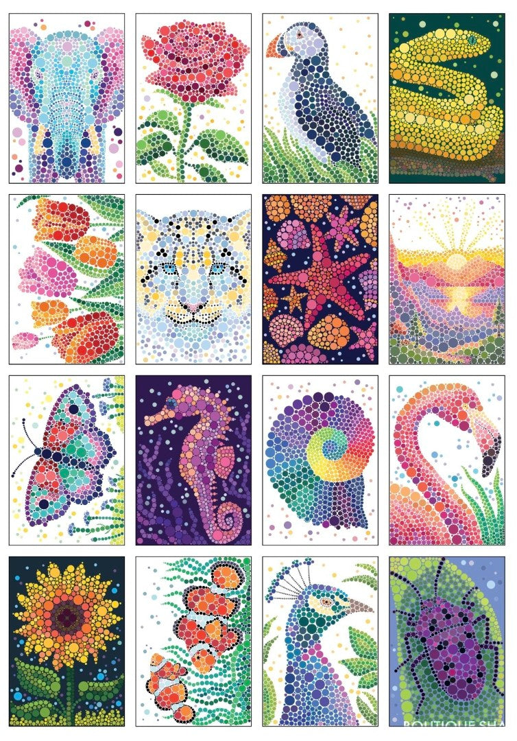 丸シールで、動物や自然の風景20作品を完成させましょう!