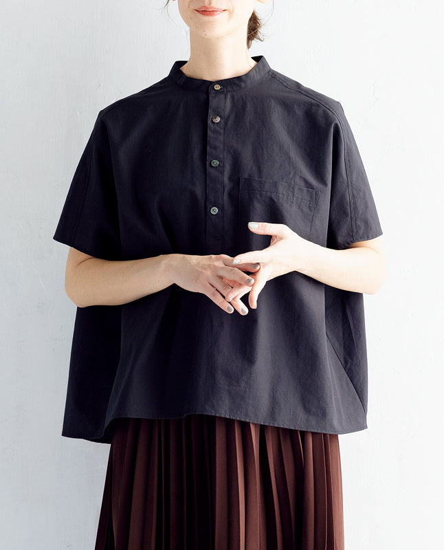 お手持ちのシンプルなボトムが活きる、合わせやすさ抜群のスキッパーシャツ。袖付けが無く、身頃から続いたフレンチスリーブでゆったりとした身幅のシルエットも魅力です。