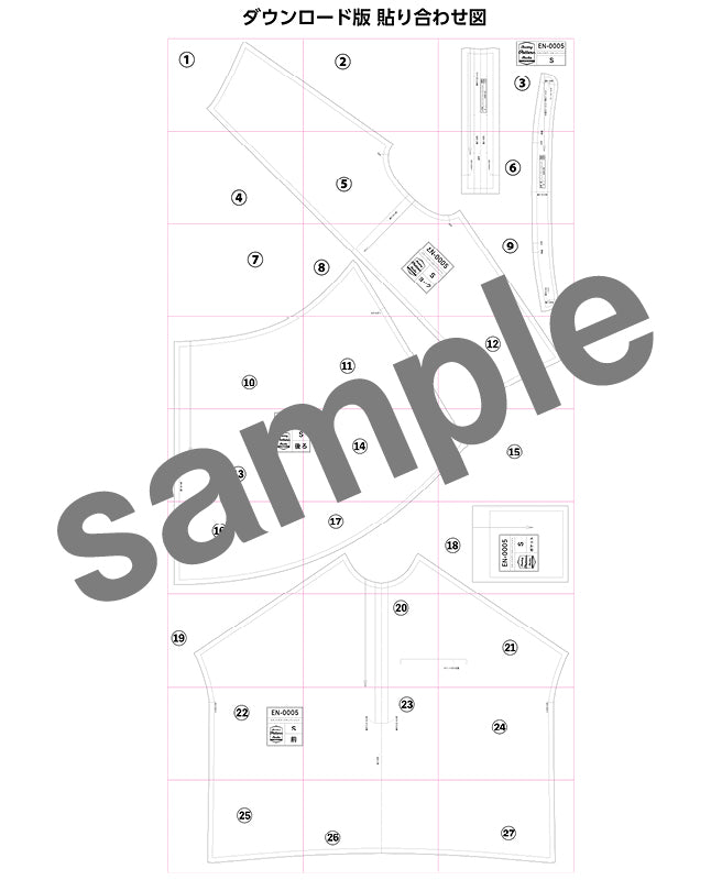 【型紙】(A4サイズ) S27枚/ M27枚/ L30枚/ LL32枚 (貼り合わせてお使いください)