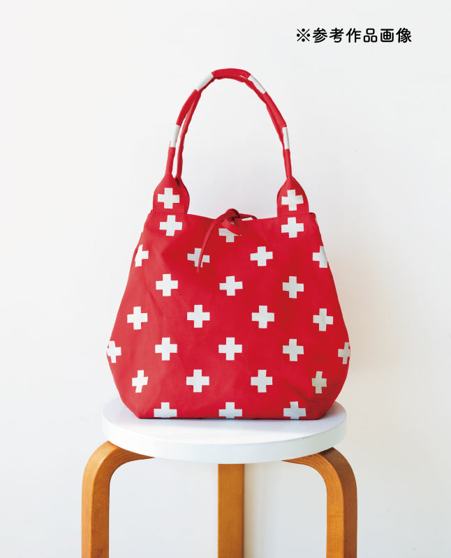 国産の上質帆布で定評のある"富士金梅®︎"と赤峰清香さんが一緒に作ったオリジナルデザイン。「10号パラフィン帆布 クロス柄」は、10号パラフィンならではのハリと厚みがあり