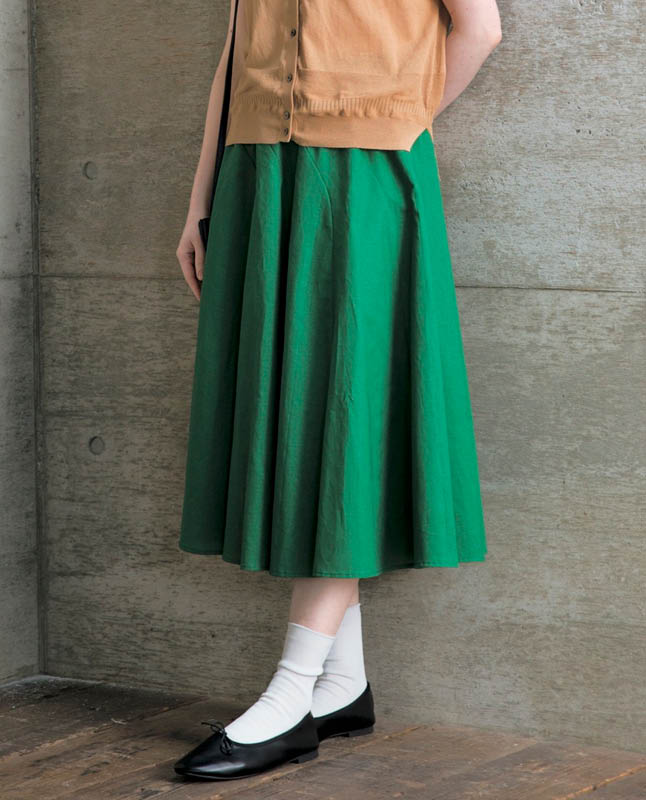 ゴムウエストのスカートというとカジュアルな印象がありますが、