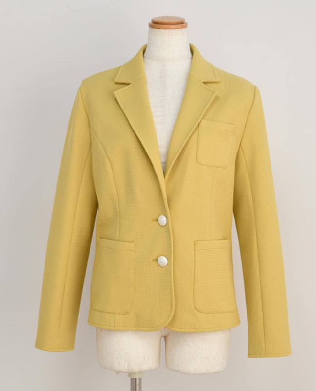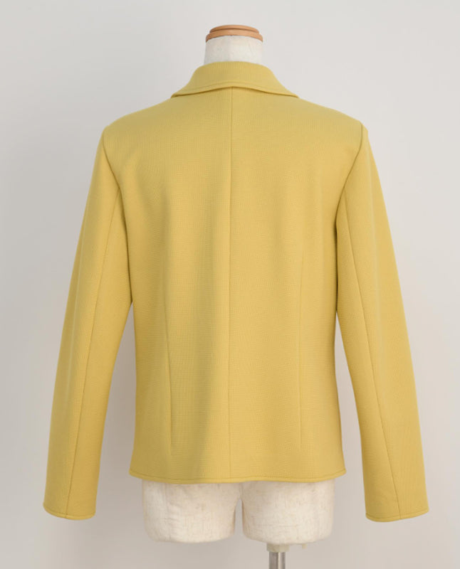 程よくハリのあるニット地で仕立てれば、ラフに羽織ってもサマになるテーラードジャケットに。カーディガン感覚で着られるので、ジャケットの堅苦しさが苦手な方におすすめです。デニムに合わせてこなれカジュアルスタイルでのコーディネートがおすすめ。