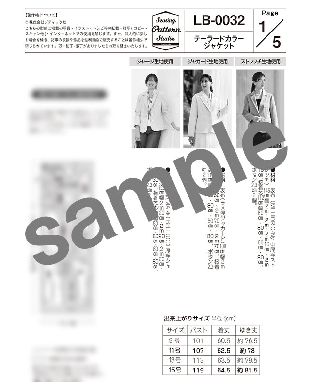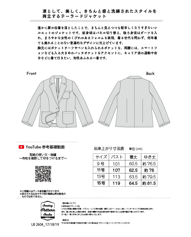【型紙】テーラードカラージャケット(LB-0032)