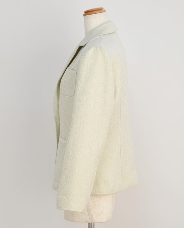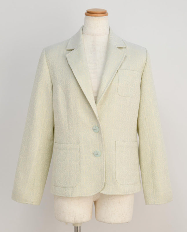 僅かに肩の位置を落としたことで、きちんと見えつつも堅苦しくなりすぎないシルエットのジャケットです。前身頃はパネル切り替え、後ろ身頃はダーツを入れ、まろやかな女性のくびれのあるフォルムを表現。着る世代を問わず、何年着ても廃れることのない普遍的なデザインに仕上げています。