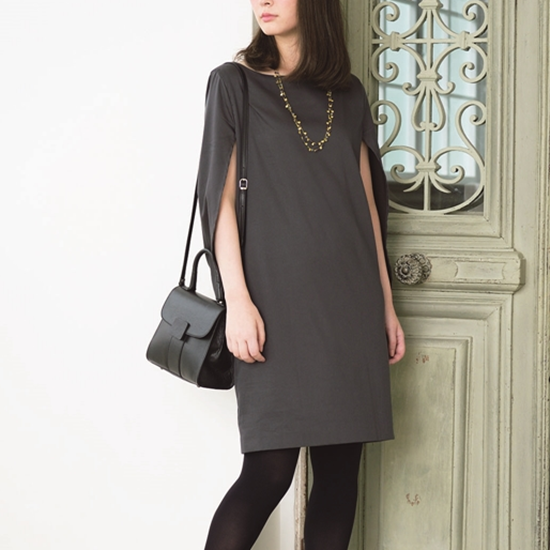 ワンピースを光沢のある布地で作れば、ちょっとしたフォーマルウェアに。ブラウスは、ポンチなどのニット素材などが相性がよくデザインが引き立ちます。